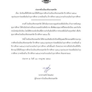 ประกาศโรงเรียนวชิรธรรมสาธิต เรื่อง กำหนดวันปิดภาคเรียนที่ 1 และเปิดภาคเรียนที่ 2 ปีการศึกษา 2568