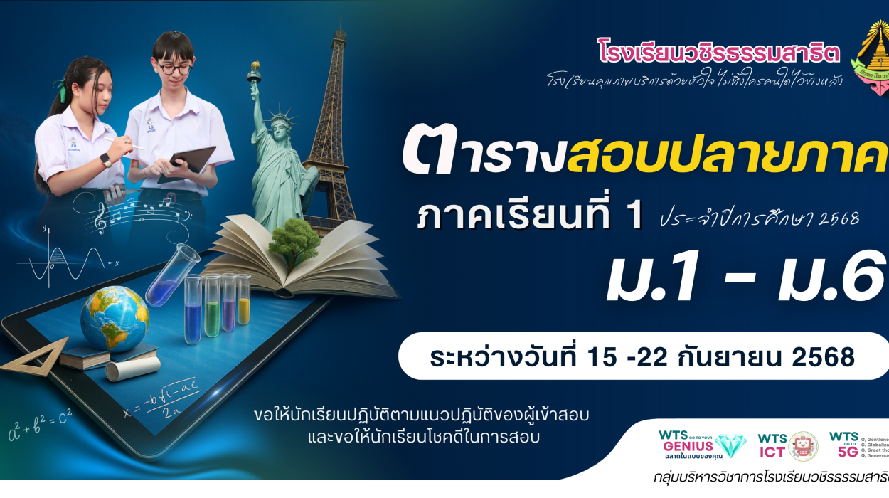 ประกาศโรงเรียนวชิรธรรมสาธิต เรื่อง แนวปฏิบัติของผู้เข้าสอบ ตารางสอบปลายภาค ประจำภาคเรียนที่ 1 ปีการศึกษา 2568