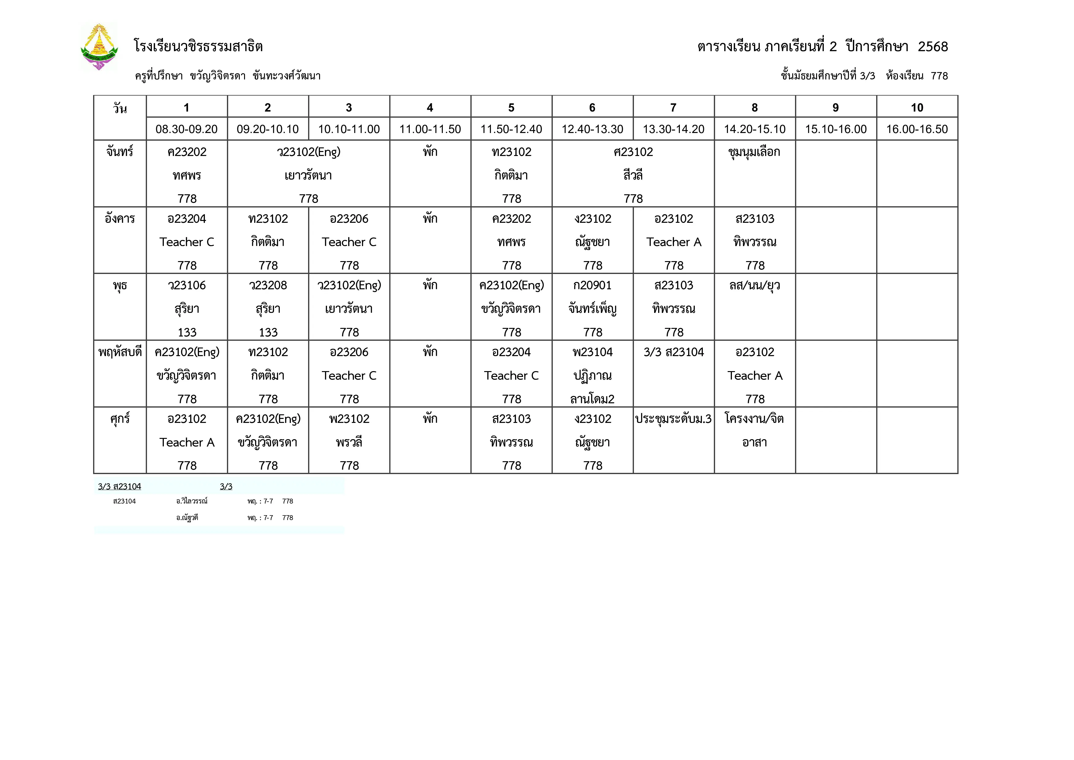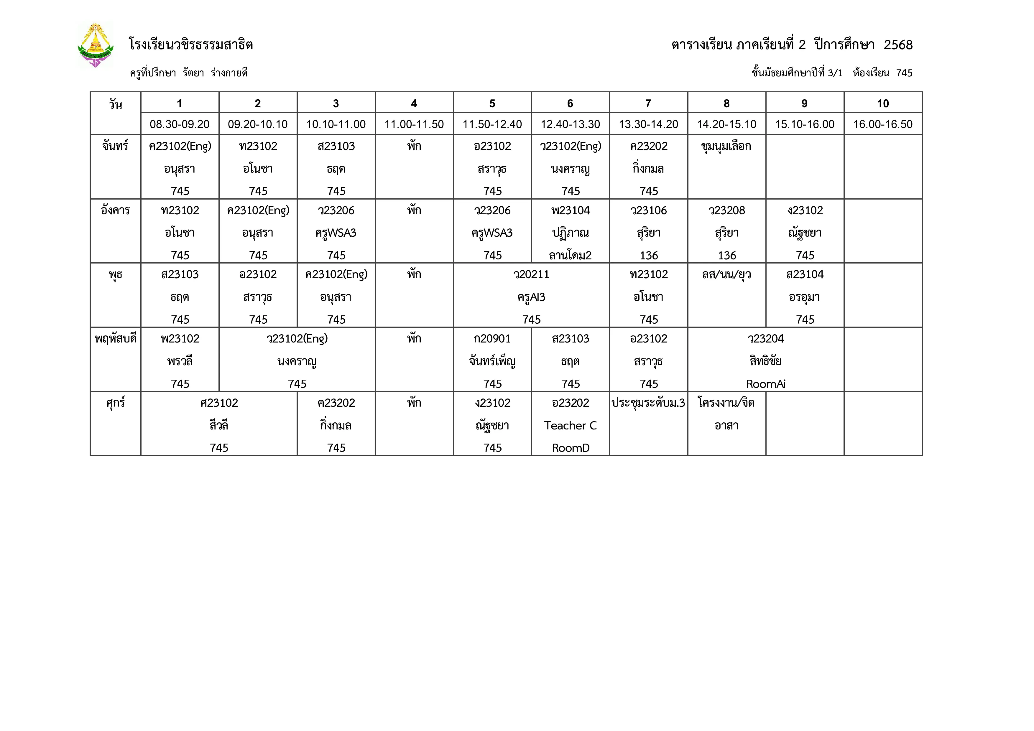 ภาคเรียนที่ 2 ปีการศึกษา 2568