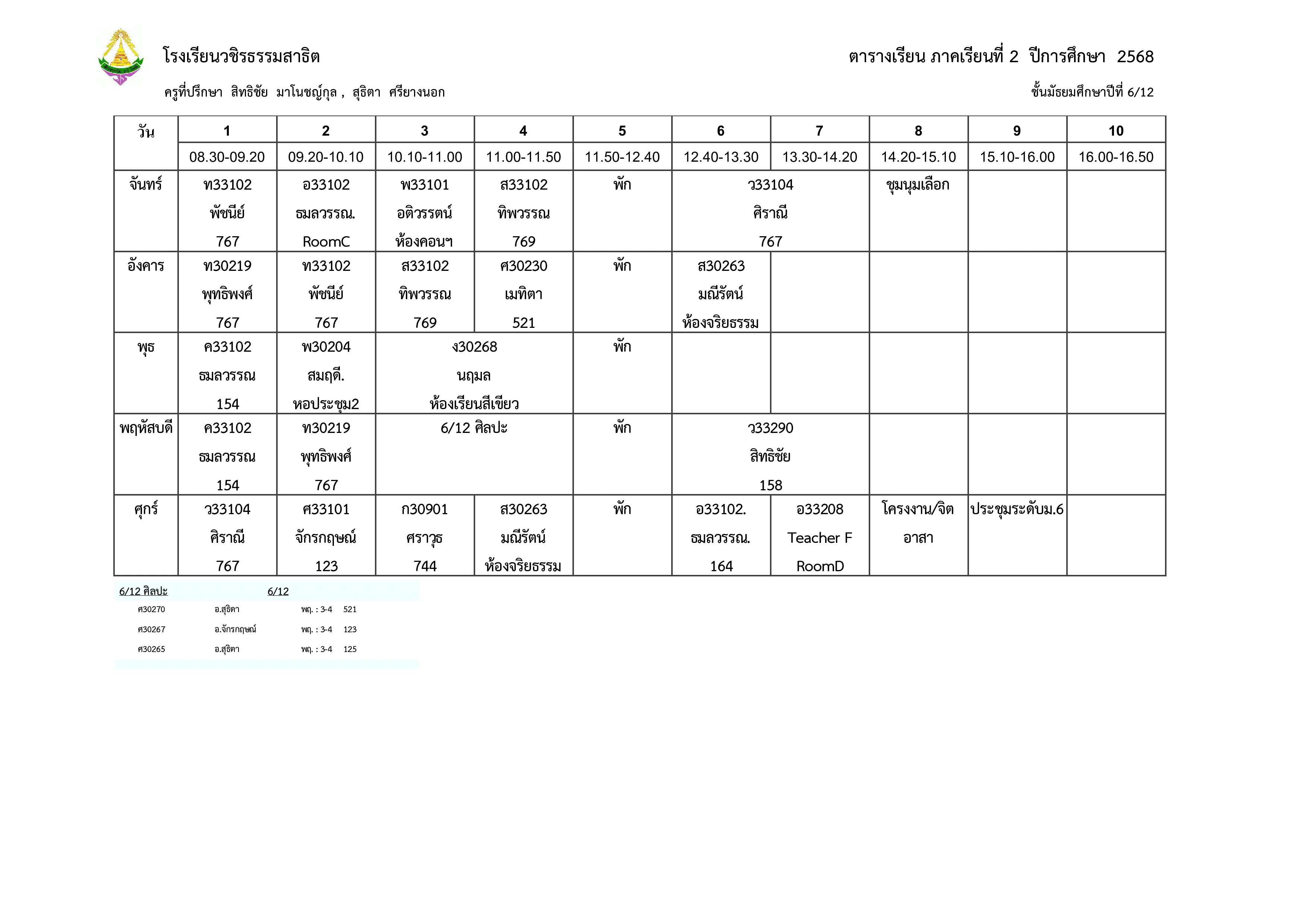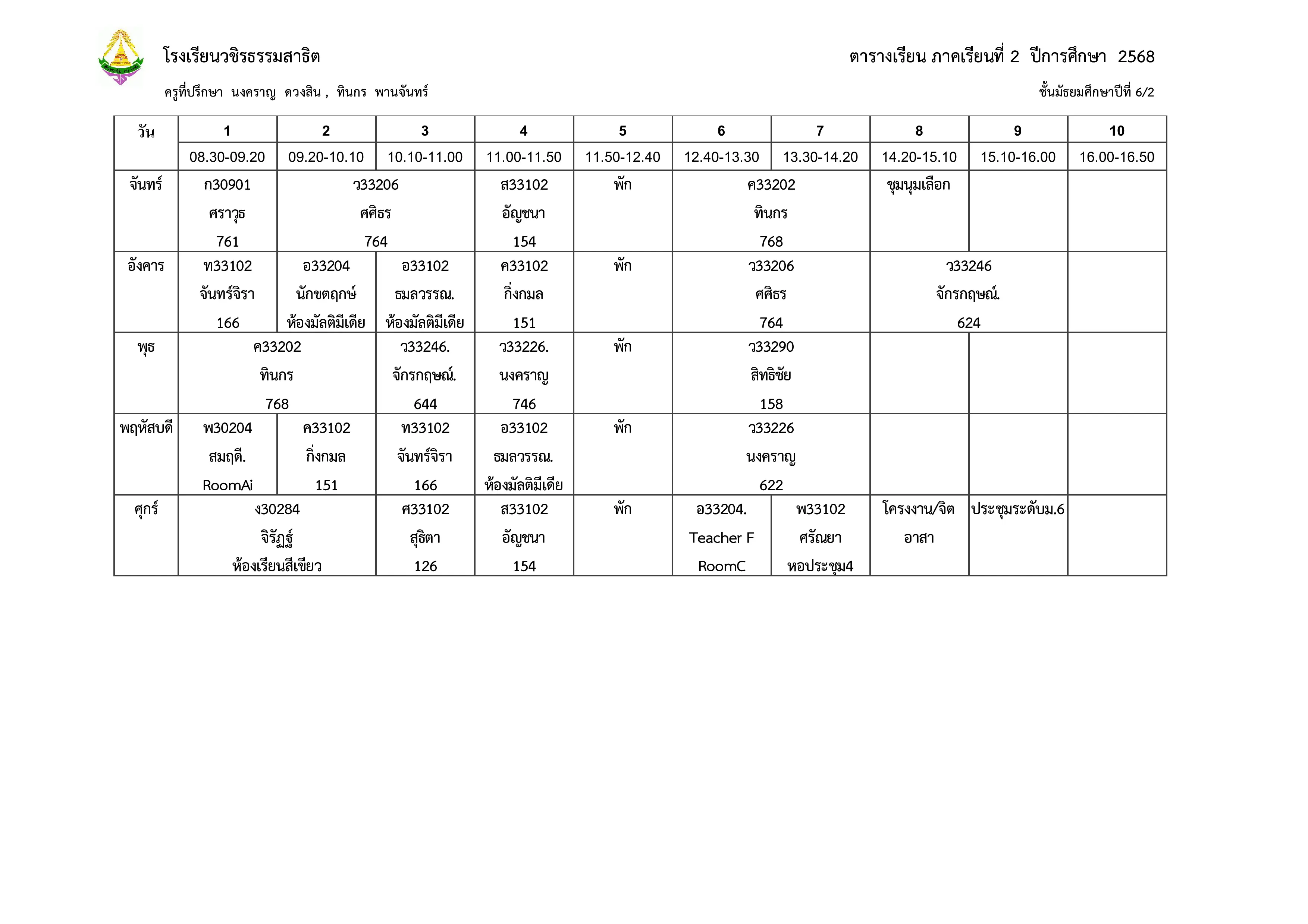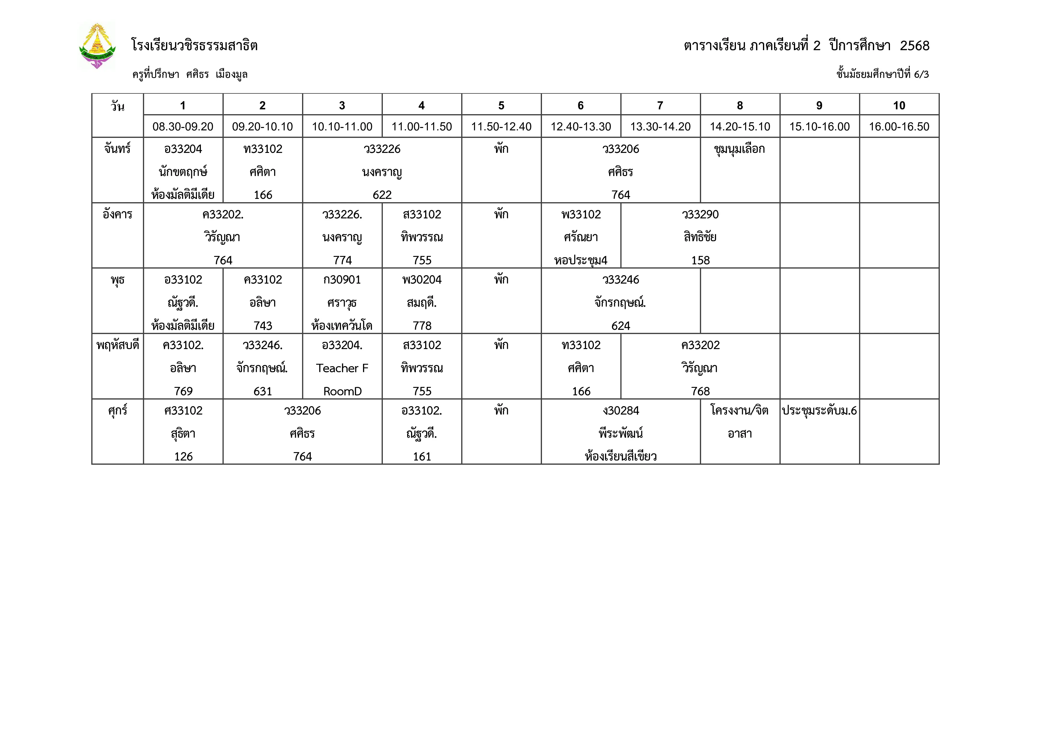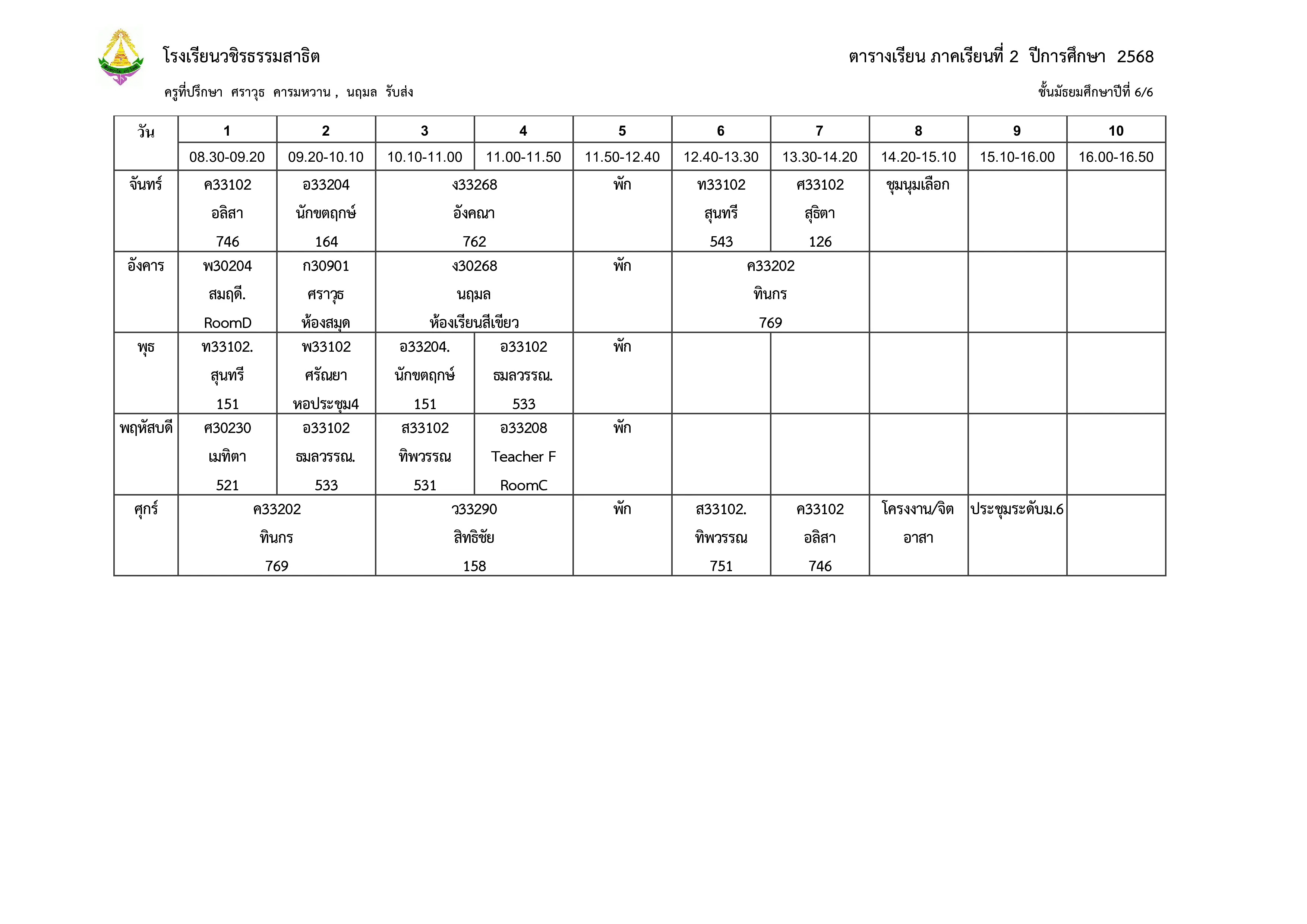 ตารางเรียน ม.6