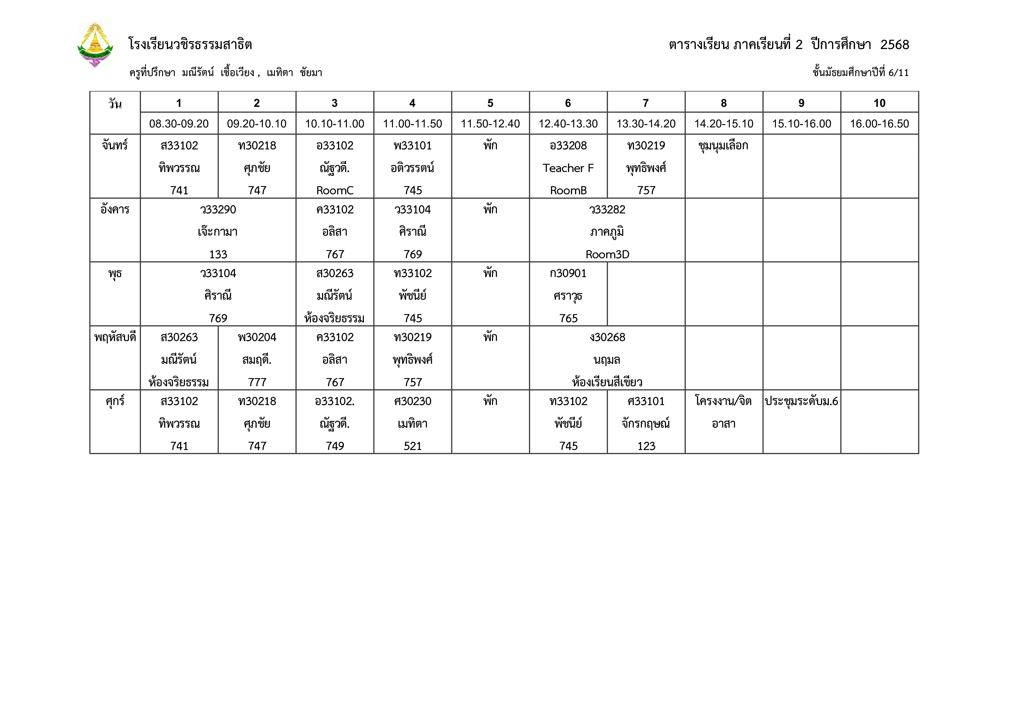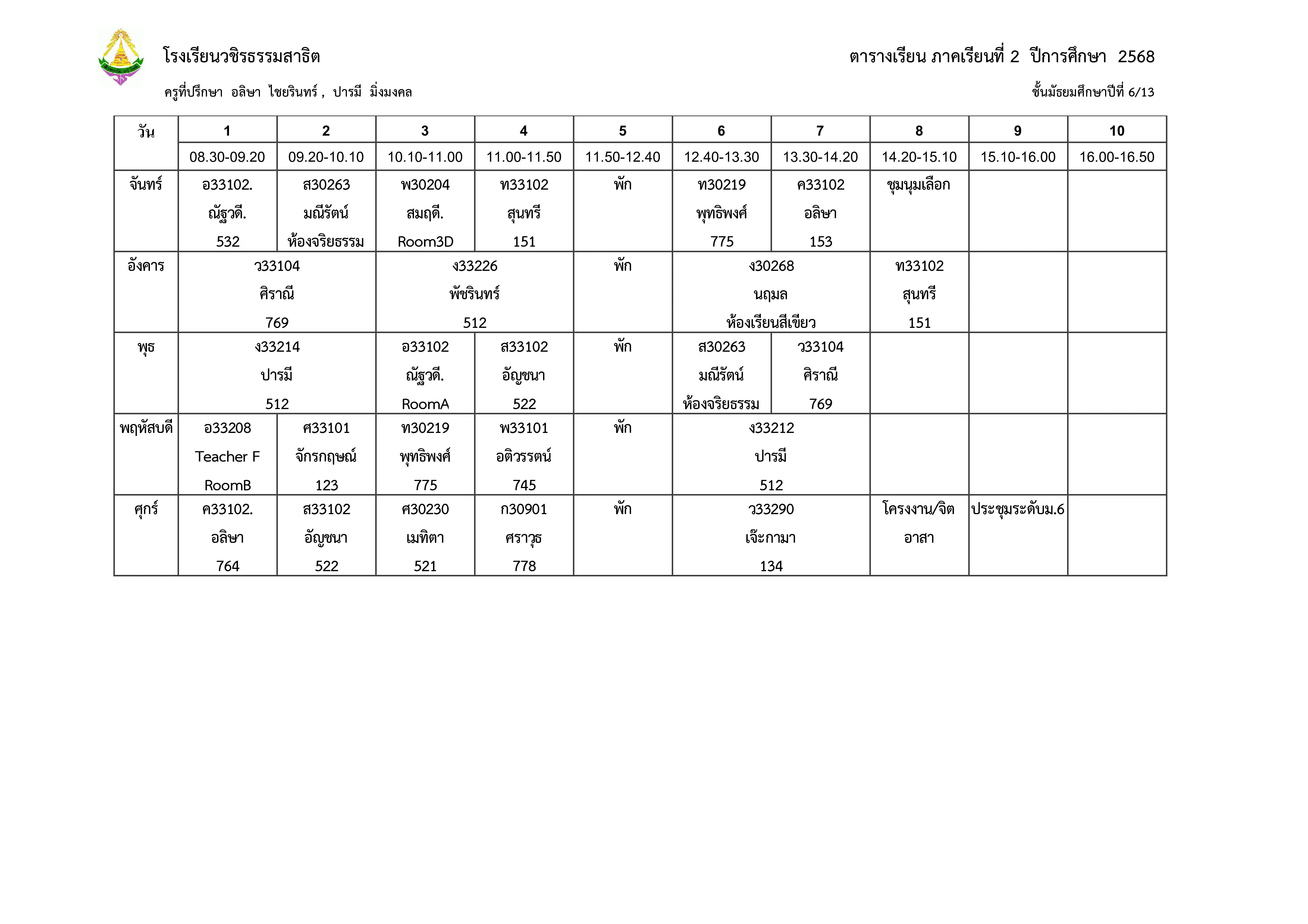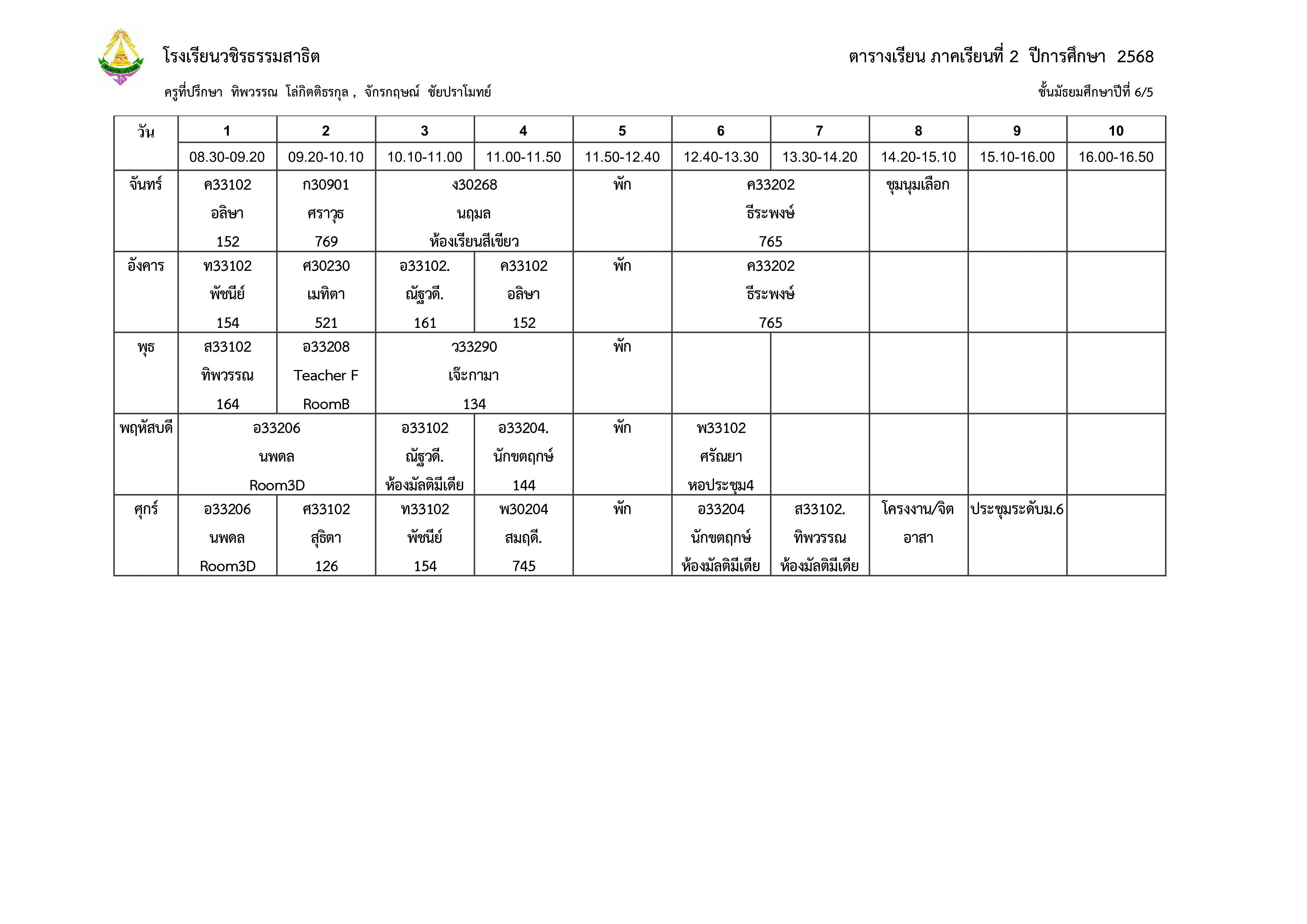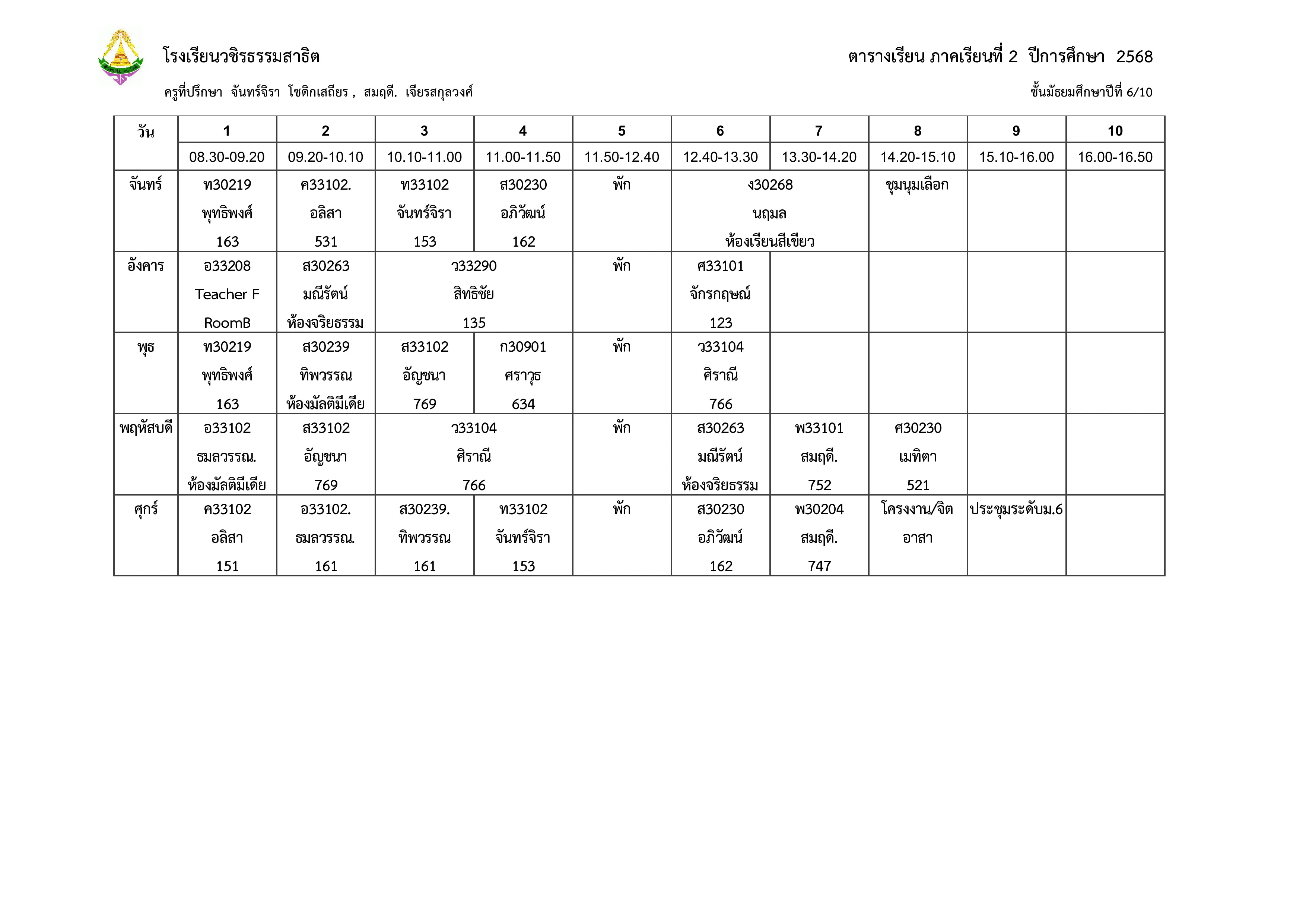 ตารางเรียน ม.6