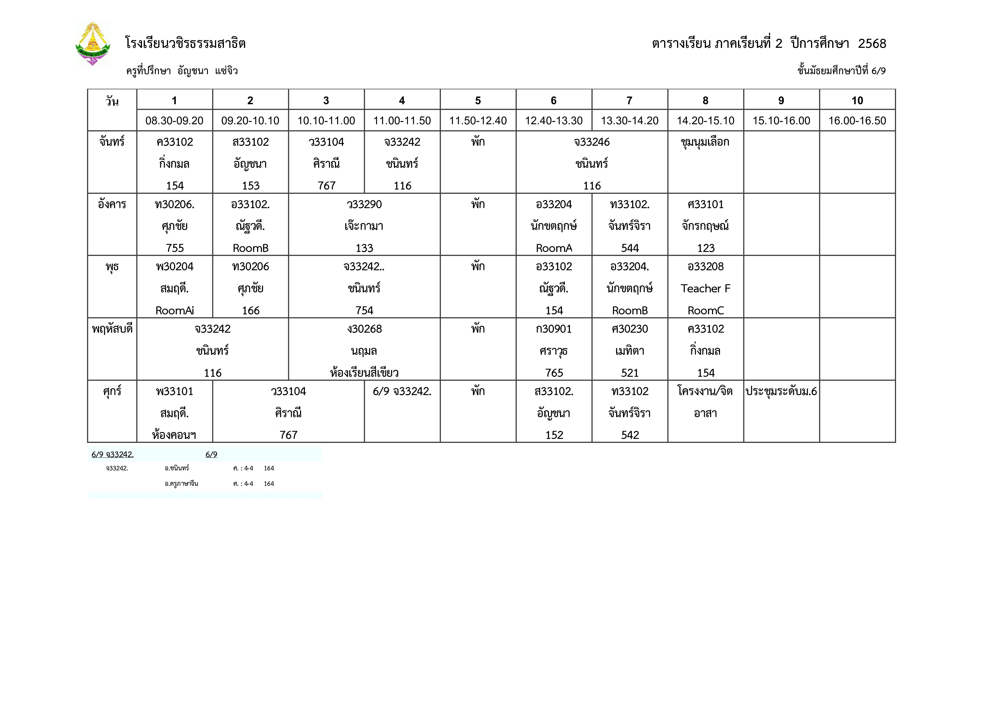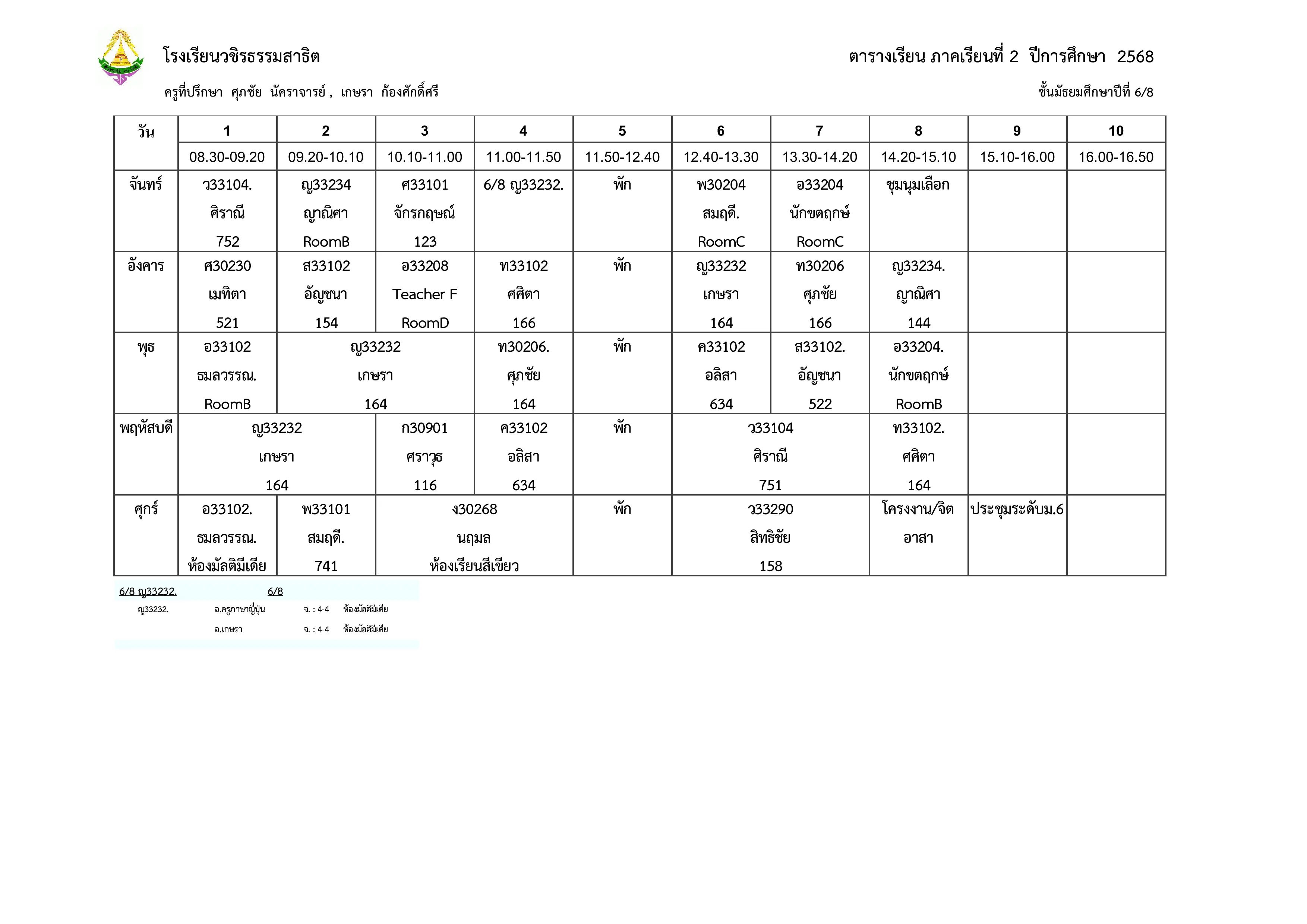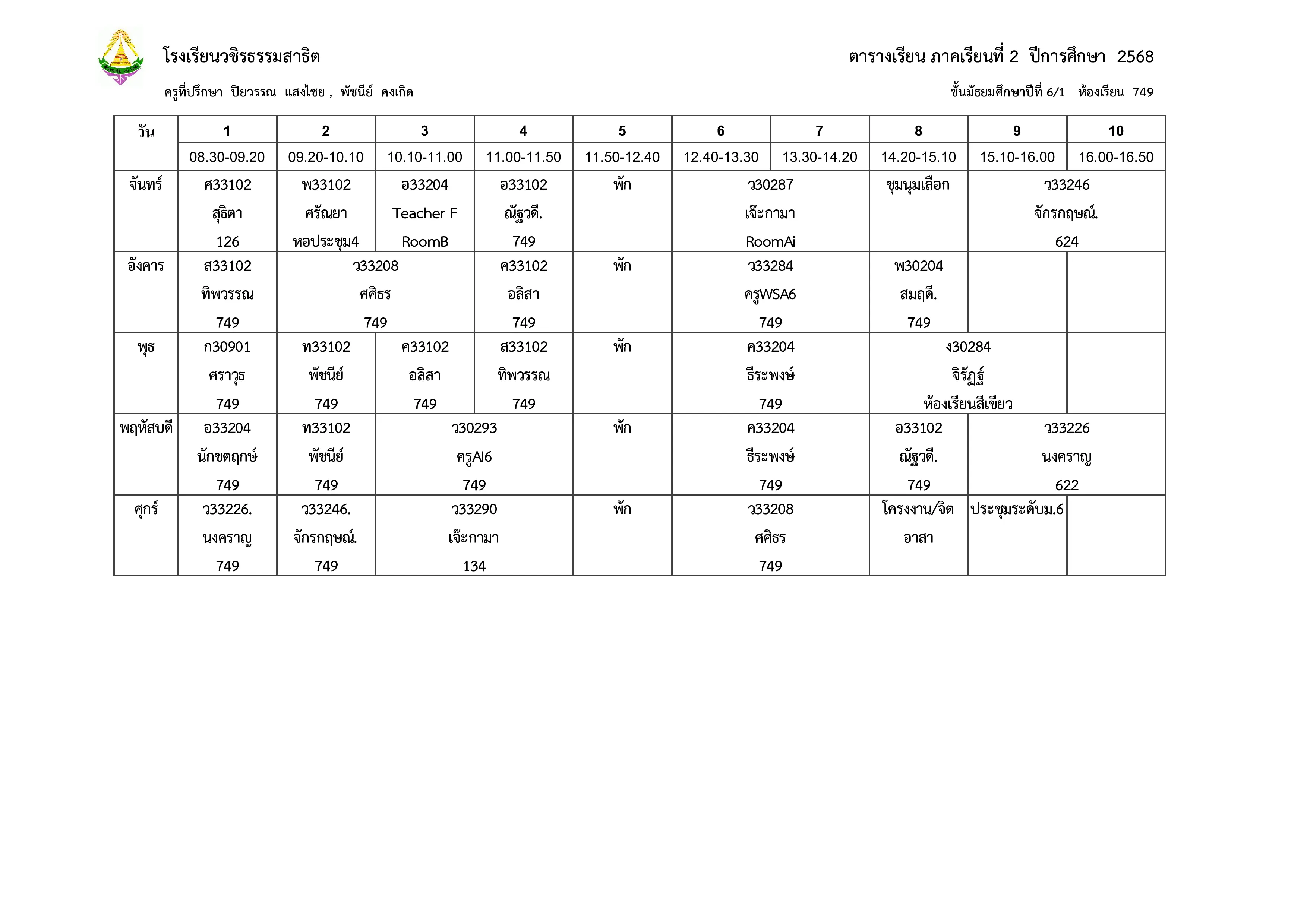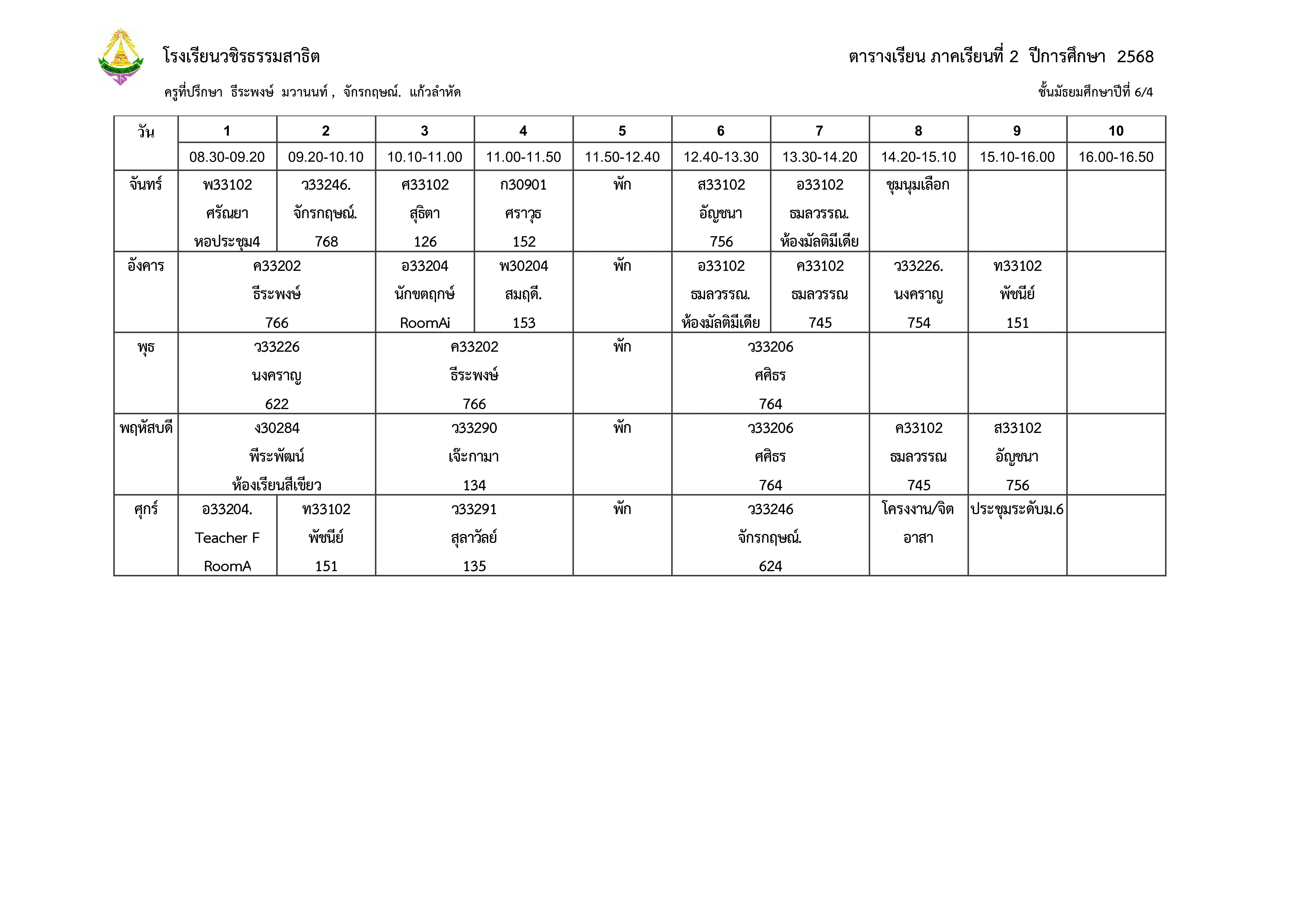 ตารางเรียน ม.6